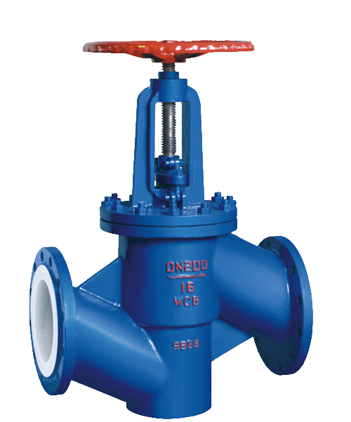 J41F46型直通式襯氟截止閥,具有結(jié)構(gòu)緊湊、啟閉靈活、耐腐蝕性能強(qiáng),行程短(一般為公稱通徑1/4)等優(yōu)點(diǎn),被廣泛應(yīng)用在石油、化工等管路系統(tǒng)做截?cái)嘟橘|(zhì)用,但需要強(qiáng)調(diào)的是氟塑料襯里的截止閥嚴(yán)禁用做流量調(diào)節(jié),以免節(jié)流口處產(chǎn)生高速介質(zhì)流沖蝕破壞密封面。